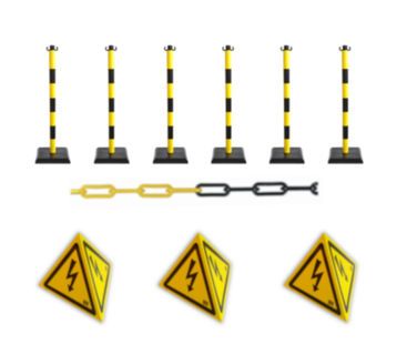 This set gives you a handy alternative for setting up a complete safety zone for working with high-voltage hybrid and electric vehicles or their high-voltage batteries. Six securely free-standing poles with cordon chains allow you to set up a safety zone which meets the safety demands. Such a safety zone needs to be set up to secure high-voltage vehicles or their HV components and to protect trainees in laboratories or repair shops. For any work on a high-voltage battery it is essential for the area to be cordoned off. Setting up a safety zone is therefore an essential aspect of any training.